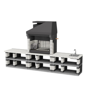 Saber másCocina exterior MOVELAR Pan America Blanco. Con parrilla argentina, fregadero y horno lateral. Hasta 15 personas. Ideal para jardín.