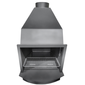 Saber másBarbacoa de leña FOGOSUR D100 robusta y estable, con base lisa, parrilla de asado, control de tiro y salida Ø300; ideal para asados prolongados con seguridad.