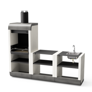 Saber másBarbacoa TUOZI Pack 4 Venit Flex con fregadero. Hormigón texturizado y diseño práctico para cocinar con leña o carbón. Entrega a pie de calle.