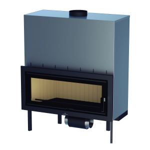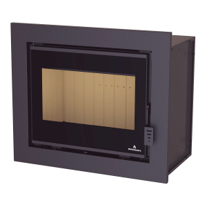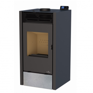 Estufa BRONPI HYBRID-P mixta leña/pellets con piedra gris, 10 kW. Diseño moderno, programable y eficiente. Depósito de 15 kg para calefacción 250 m³.