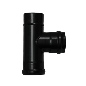 Saber másTe vitrificado negro de 80 mm y 90°, diseñado para estufas de pellet. También llamado te tubo chimenea o calefacción.