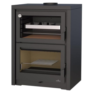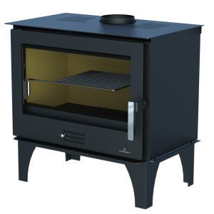 - Fabricada en acero de alta calidad con depósito de 15 kg y salida de humos Ø 100 mm.