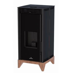 Estufa BRONPI FREE-6-V-NE sin electricidad, 6 kW, con cristal vision y base de madera negra. Ideal para lugares sin suministro eléctrico.