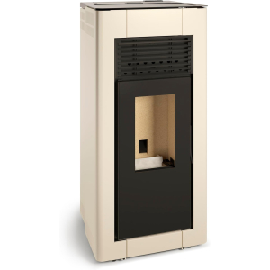 Saber másEstufa de pellet ELDA 14.7 kW marrón. Canalizable, potente, conforlux, cristal limpio, Air Silence.