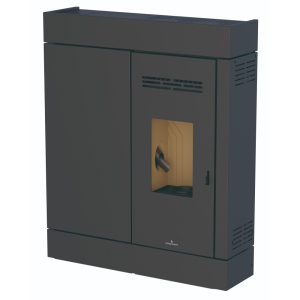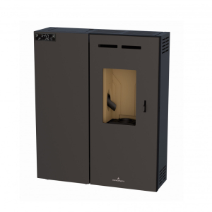 Estufa de pellets BRONPI modelo MINERVA-SLIM-NE de 7 kW extraplana y de medidas reducidas en color negro