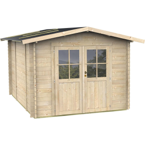 Caseta de jardín ALCE Bh25 Opera 250x250 cm en abeto natural 25 mm con puerta doble con ventana. Techo y suelo machihembrado, viga autoclave y certificación PEFC.