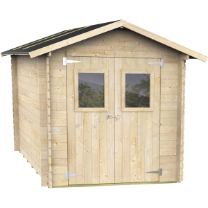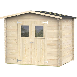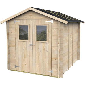 Caseta de jardín ALCE Bh19 Hobby 248x198 cm fabricada en abeto natural 19 mm con puerta doble con ventana. Techo y suelo machihembrado, base tratada y certificación PEFC.