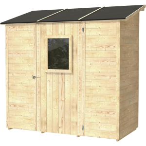Caseta adosada ALCE Vaniglia 207x102 cm en abeto natural 19 mm con puerta con ventana. Incluye techo y suelo machihembrado, montaje en kit y certificación PEFC.