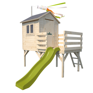 Saber másCasita infantil de madera Soulet JOSÉPHINE elevada con tobogán, diseño divertido y montaje sencillo.