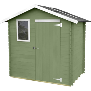 Saber másCaseta de jardín ALCE Bh16 Livia verde, de abeto pintado 16 mm con puerta simple y ventana frontal. Incluye suelo y techo OSB3, montaje fácil y certificación PEFC.