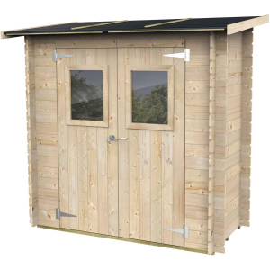Caseta de jardín ALCE Bh19 Hobby 198x198 cm fabricada en abeto natural 19 mm con puerta doble con ventana. Techo y suelo OSB3 incluidos, montaje sencillo y certificación PEFC.