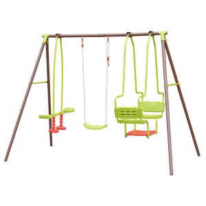 Columpio cuádruple Soulet Malo de acero con 2 asientos, balancín y góndola, resistente y seguro para jardín.