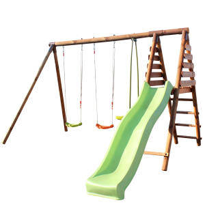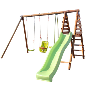 Saber másParque infantil Soulet Figue de madera con columpio, balancín, cara a cara y tobogán, ideal para jardín.