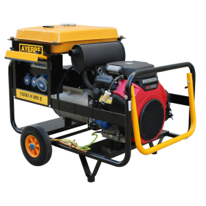 Saber másGenerador gasolina Ayerbe 15000 H TX AVR E con motor Honda GX-690, 10.800 W, arranque eléctrico, AVR y salidas 400/230 V trifásicas y monofásicas.