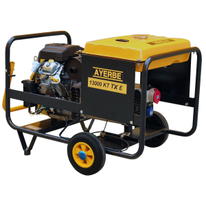 Saber másGenerador gasolina Ayerbe 13000 Kiotsu TX AVR E con motor KT-740, 12,5 kVA, arranque eléctrico, AVR y salida dual 400/230 V para máxima versatilidad.