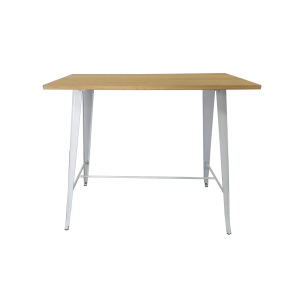 Mesa Alta TOL Blanca Madera de Olmo 120x60 cmEstructura de acero pintada en blancoTapa de madera maciza de olmo acabado naturalIdeal para hostelería, terrazas o barrasMedidas: 120 x 60 x 105 cm Saber más