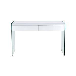 Mesa LIMOGES cristal y cajonera blancaLaterales de cristal templado de 12 mmCajonera de dos cajones lacada en blanco alto brilloDiseño funcional y elegantePerfecta como mesa de oficina o tocador Saber más