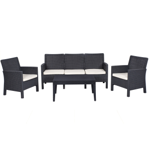 Saber másMedidas: Sillón 62x66x80; Sofá 172x66x80; Mesa 90x55x45 cm. Montaje sin tornillos. Homologado hostelería.
