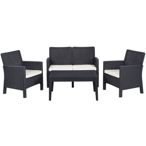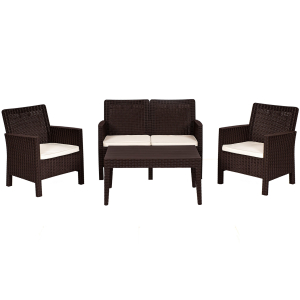 Saber másMedidas: Sillón 62x66x80; Sofá 117x66x80; Mesa 90x55x45 cm. Montaje sin tornillos. Homologado hostelería.